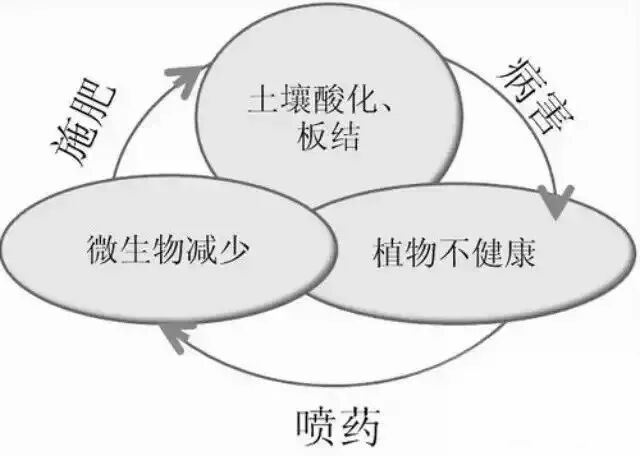 过酸或过碱的土壤导致营养元素有效性降低,在施肥时我们要想达到效果就只能多施肥,多施肥又会导致土壤继续被破坏,导到土壤理化性质继续恶化。